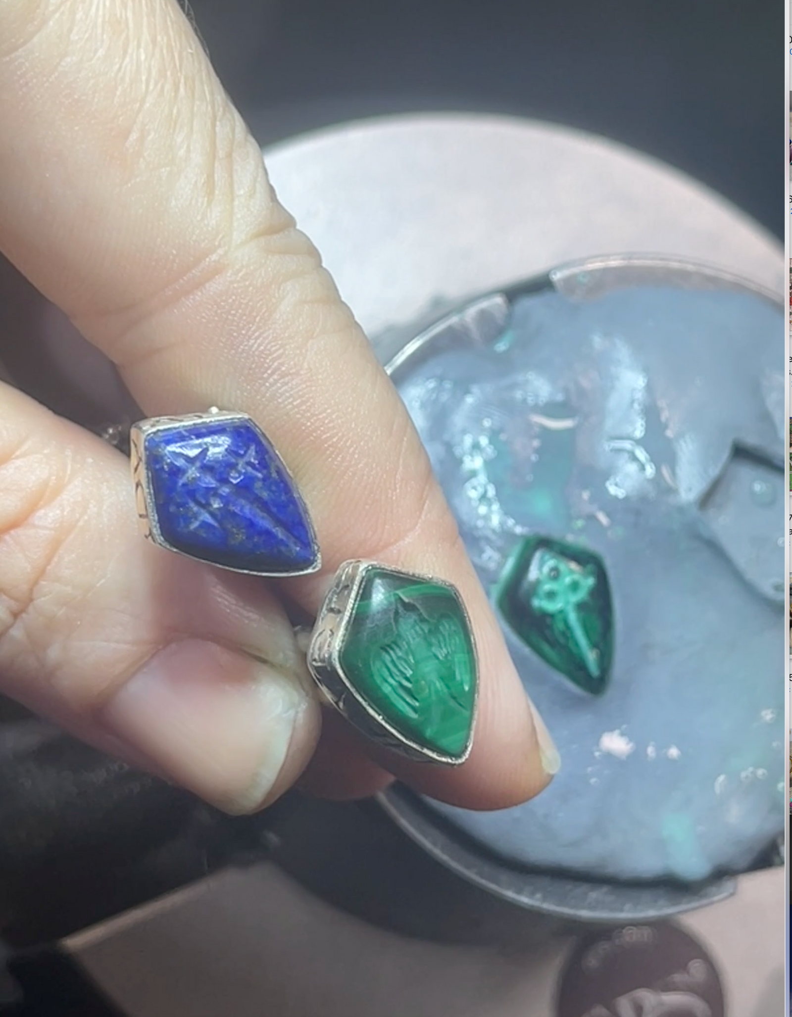 Each pendant in the Guardian’s Post mini collection has been cast in solid sterling silver using the traditional lost wax casting method. The bases feature shield-shaped matrices, either sterling silver or hand carved gemstone, each engraved with a one of a kind motif. When pressed into warm sealing wax, the reverse image is transferred into the surface. Once the wax cools, the matrix lifts away to reveal the impression, leaving a clear and recognizable mark.