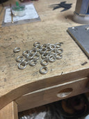 将银线制成锁链 昨晚我把一些东西扔进了滚筒,我想在等它们翻滚的时候让我的手忙起来,所以我快速制作了一些链条并记录下了整个过程中的步骤。 我一开始用的是 12g 纯银圆线,因为我最终想用金线制作,所以我确保测量了我使用的线的长度。对于这条短链,我使用了 3.5 英尺的 12g 线。它制作了大约 36 个完整的链环,因此每个链环使用大约 1 英寸。 为了制作链环,我将...